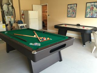 Enjoy your sunny Florida vacation in this beach themed "House of Beachy Bluez". A four bedroom, three bathroom luxury rental house. It offers an EXTRA large privacy fenced rear yard with private pool and a free standing hot tub, located just three miles from Disney World, in Kissimmee Florida. FREE high speed WIFI PLUS a games room with an electronic hockey game and a standard size pool table.